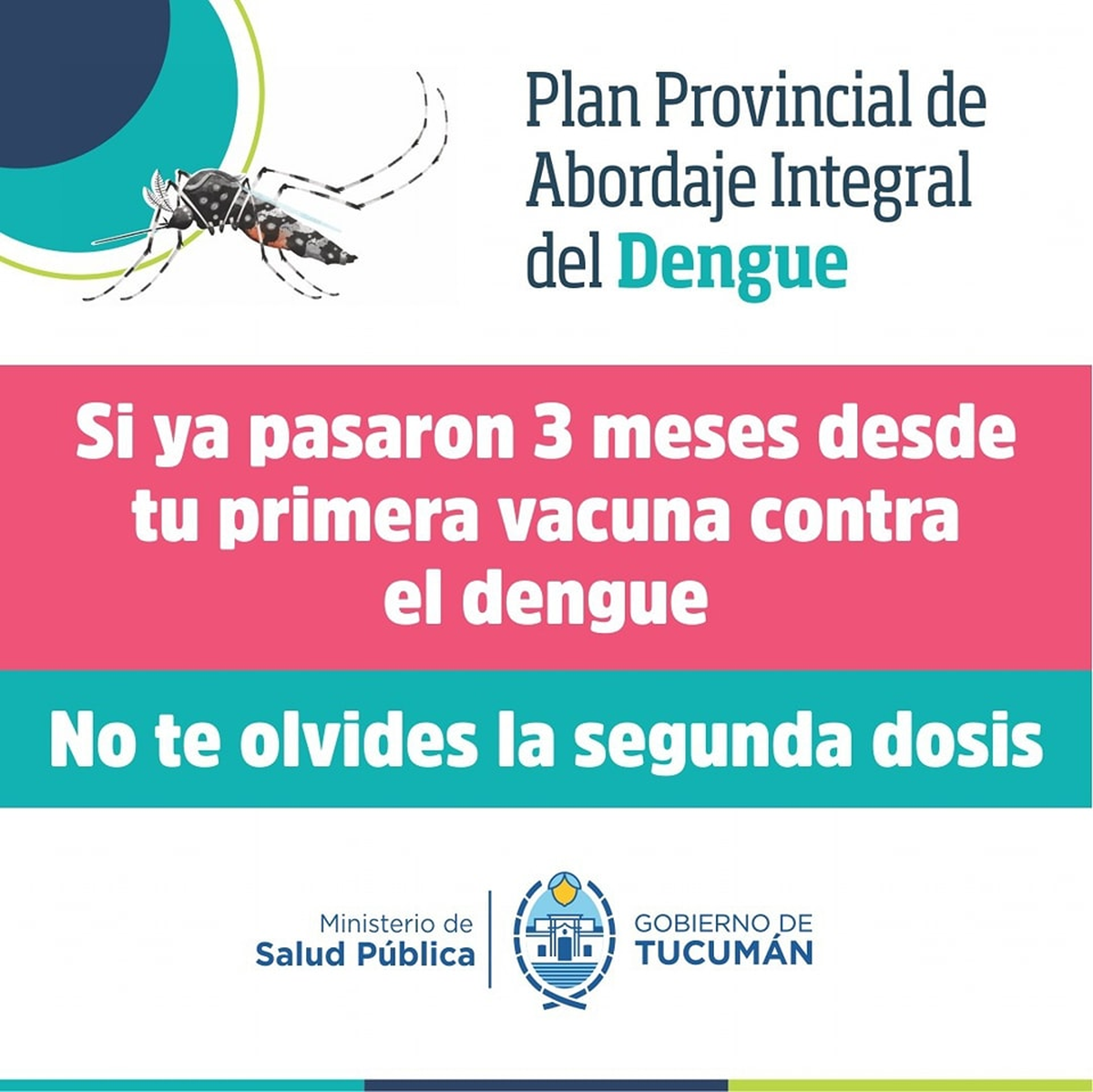 El Ministerio de Salud Pública de Tucumán continúa con la campaña de vacunación contra el dengue en la provincia. Este sábado te esperan con tu DNI en el 107 y en el hospital de Aguilares. La vacuna es voluntaria, segura y gratuita.